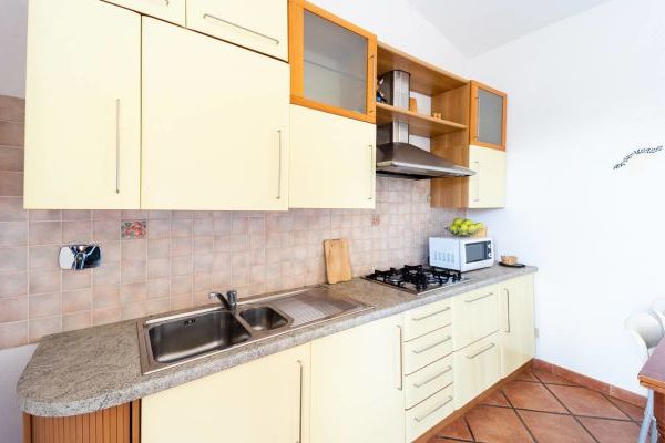 BILOCALE 4 PERSONE PIETRA: Bilocale per 4 persone (circa 28 mq), situato nella casa in pietra, dispone di bagno, zona giorno con eventuale divano letto matrimoniale e angolo cottura, camera da letto con letto matrimoniale o due letti singoli, alcuni con letto a castello. Offre Tv sat, Wi-fi, angolo cottura con frigo e alcuni con freezer, forno normale o a microonde, fornello a gas (4 fuochi).
