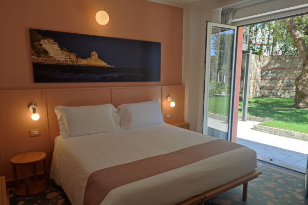 BILOCALE 4 SUPERIOR GARDEN: Spazioso bilocale di 49 mq, situato al piano terra.L'ingresso si apre su un luminoso soggiorno, arredato con un comodo divano letto e una cucina a vista, con TV a schermo piatto, progettata per garantire praticità e comfort.Offre una camera doppia con letto matrimoniale. L'appartamento dispone di due bagni: uno padronale con doccia e un bagno di servizio. Dotato di tutti i comfort essenziali - lavastoviglie, lavatrice, forno a microonde, asse e ferro da stiro e cassaforte - questo appartamento è progettato per soddisfare ogni esigenza.Inoltre, un ampio giardino arredato, situato proprio di fronte all'appartamento, offre un luogo ideale per il relax all'aperto. Questa opzione è perfetta per chi cerca uno spazio accogliente e ben attrezzato per godersi tranquilli momenti di tranquillità. Occupazione massima 4 adulti + 1 infant (0/2 anni in letto aggiunto).
