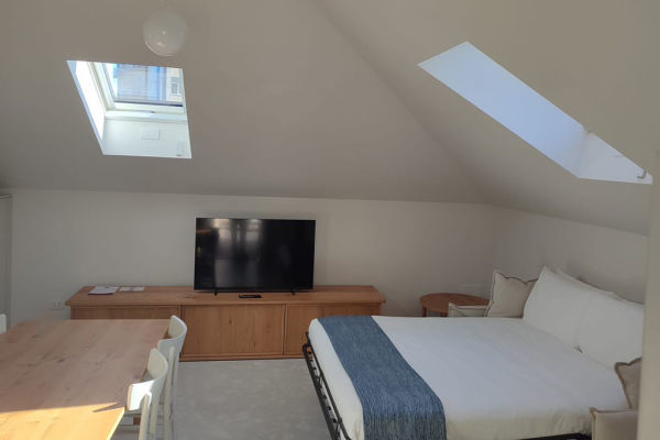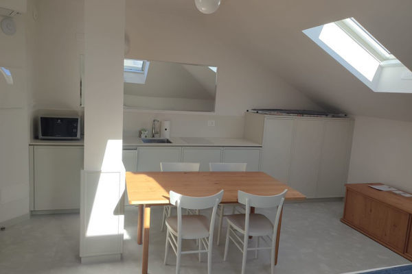 MONOLOCALE 2 PERSONE MANSARDA: Monolocale mansardato di circa 39 mq, posto al secondo piano dell'edificio. Può essere occupato da 2 adulti + 1 infant sotto i 4 anni, con eventuale lettino a pagamento.L'appartamento offre un comodo soggiorno con divano letto, integrato con una ampia cucina a vista ed il bagno attrezzato con vasca da bagno. L'appartamento è dotato di tutti i principali elettrodomestici, tra cui lavastoviglie, lavatrice, forno a microonde, aspirapolvere, ferro e asse da stiro e cassaforte. Per completare l'ambiente c'è una piccola terrazza arredata con vista sul giardino.