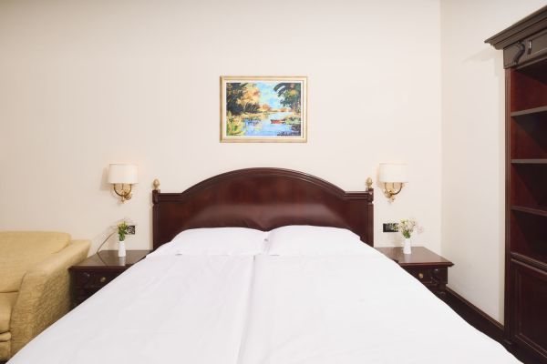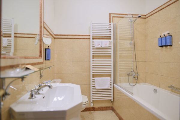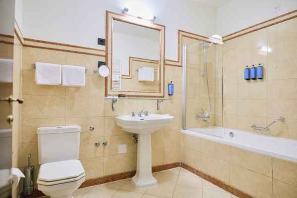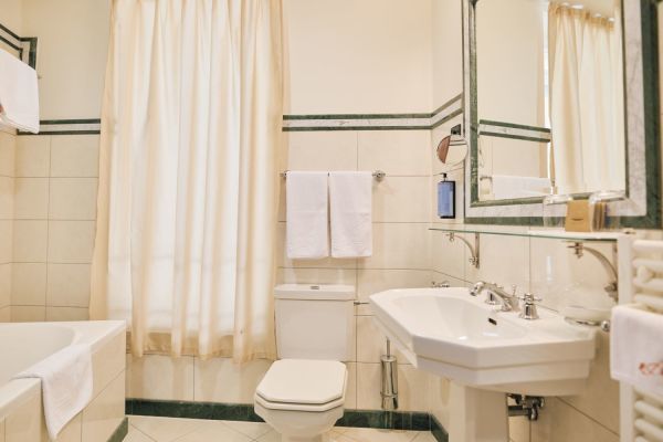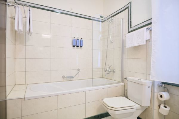 Dotazioni della camera: bagno con vasca o doccia, asciugacapelli, accappatoio e pantofole, aria condizionata, telefono con linea diretta, Wi-Fi, Smart TV LED con canali satellitari, bollitore e cassaforte.