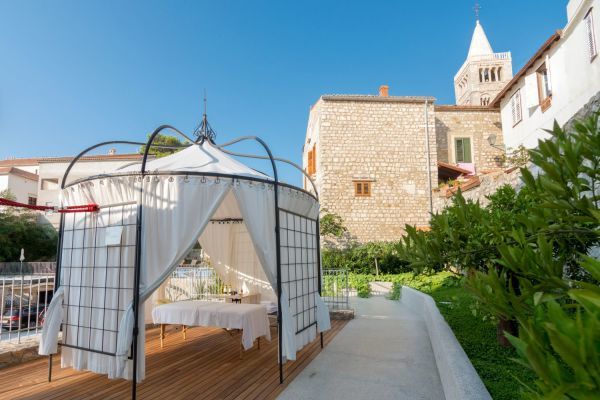 Nel cuore della città medievale di Rab, proprio accanto alle mura della città vecchia e a pochi passi dal mare, si trova il lussuoso Arbiana Heritage Hotel. Questa bellissima oasi di pace è il luogo ideale per chi cerca privacy e relax, ma allo stesso tempo si aspetta il massimo del servizio e dell'ospitalità. Grazie alla sua posizione unica, questo hotel offre la migliore esperienza di Rab e dell'isola in generale, perché ognuna delle spaziose camere di questa bellissima villa mediterranea con una facciata in pietra offre una vista su alcune delle specialità di questo luogo, che sono diventate simboli riconoscibili dell'isola: il porto e il mare azzurro e cristallino, i campanili di Rab, il magnifico parco mediterraneo o le strette strade acciottolate della città vecchia.
