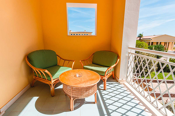 Immerse in un suggestivo scenario naturale, sono state realizzate per regalare il massimo comfort, luminose, accoglienti ed elegantemente arredate, tutte con servizi privati, aria condizionata, TV e cassetta di sicurezza, telefono, patio o terrazzo. La Camera Standard può essere assegnata, in base alla disponibilità e occupazione, in una delle seguenti tipologie: camere doppie e triple (disponibili camere comunicanti) o camere da 4 a 6 ospiti, con divano letto, solo in appartamenti bilocali e trilocali, che si trovano a circa 150-250 metri dall’hotel, ideali per le famiglie più numerose e per chi ama maggiore abitabilità e riservatezza (disponibili bilocali con camera matrimoniale e divano letto in area living o trilocali con una camera doppia aggiuntiva). Camere quadruple vista piscina posizionate nelle aree adiacenti al corpo centrale e con supplemento. Suite Premium: si tratta di sistemazioni che prevedono camere con ambienti separati, dotate di aria condizionata, TV e cassetta di sicurezza, minibar (riempibile su richiesta e con consumazioni da pagare in loco), bagno con vasca o doccia e asciugacapelli; in questa categoria rientrano anche gli Appartamenti del Porto, ognuno caratterizzato da arredi e colori differenti, con spettacolare vista sul porto: i bilocali dispongono di area living e cucina attrezzata, camera matrimoniale, bagno con doccia e terrazzo arredato; i trilocali dispongono di ulteriore camera con due letti separati, e possono ospitare fino a 6 persone. La tipologia Suite Premium include il pacchetto Premium.