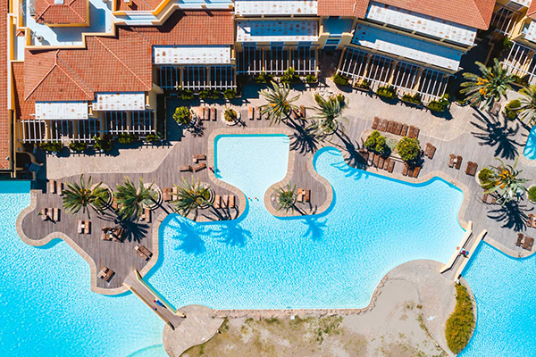 La maestosa piscina “Laguna” di 6.000 mq con i suoi isolotti, ponticelli, area sabbiosa e spazi verdi vi aspetta con varie vasche disponibili per grandi e piccini.