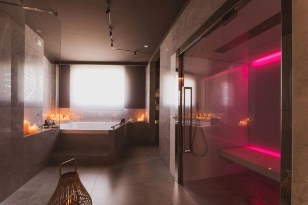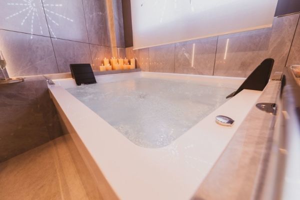 Suite Spa: 65 mq, ambiente intimo ed esclusivo, arredato con qualità e cura. Gli ospiti potranno disporre di vasca idromassaggio, bagno turco e doccia emozionale con aromaterapia e cromoterapia.