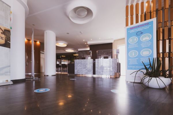 All'interno dell'hotel, gli spazi ampi e luminosi, le vetrate con vista sul giardino esterno e le linee minimal e moderne si sposano con i colori decisi degli arredi. La sala colazioni offre agli ospiti un ricco, variegato ed internazionale banchetto, con un'ampia varietà di prodotti dolci e salati: prodotti locali appena sfornati, come pasticciotti e cornetti, pancakes, frutta di stagione, succhi e tanto altro. A disposizione anche un’ampia zona wellness con SPA e molteplici servizi dedicati al benessere, tra cui massaggi, percorsi e trattamenti personalizzati.