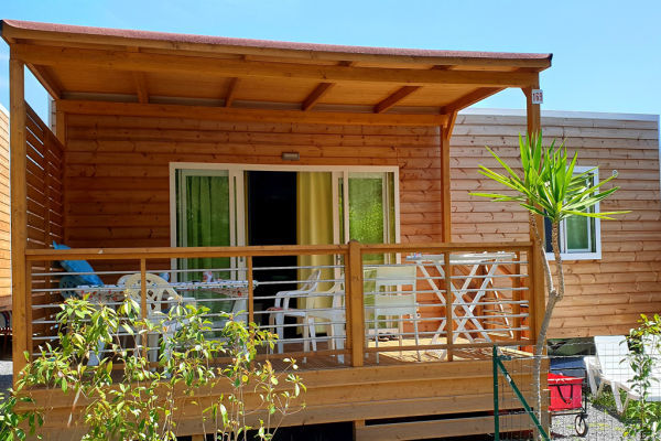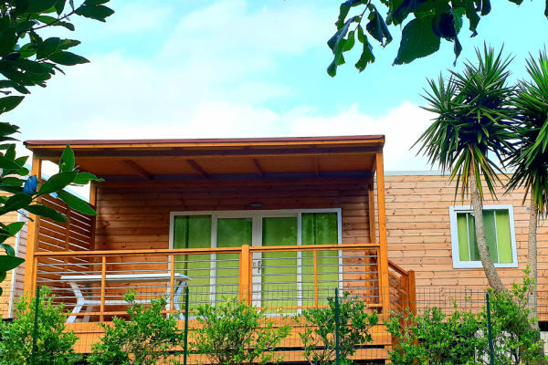 MOBILHOME 4/5 PERSONE : Le mobilhomes sono per 4/5 persone, di circa 26 mq, ed offrono una camera matrimoniale (con 2 letti singoli), una camera con 2 letti singoli ed 1 letto a castello, portata massimo 70 kg, bagno con doccia, soggiorno con angolo cottura, terrazzo con tavolo e sedie. Sono dotati di doccia, WC, bidet, phon, Tv Sat, frigo con freezer, piano cottura a gas, microonde, aria condizionata e riscaldamento a pagamento da segnalare all'arrivo.