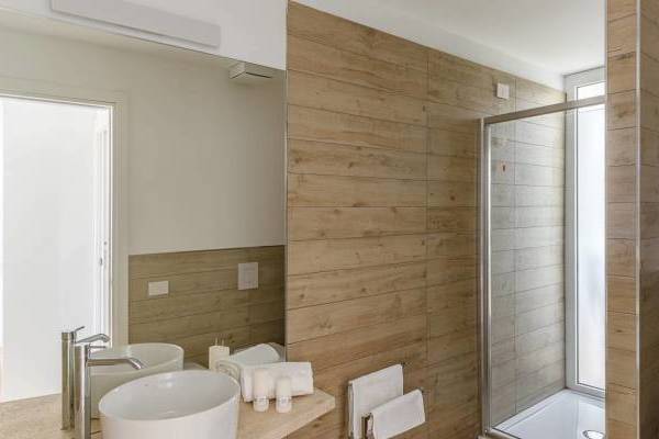 T6P - Appartamento bilocale (6 persone) PREMIUM (58 mq): Soggiorno con angolo cottura (4 piani cottura a induzione), frigorifero, lavastoviglie, divano letto matrimoniale, camera matrimoniale, camera con letto matrimoniale, 2 bagni con doccia.