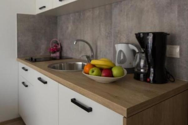 Appartamento: camera da letto con letto matrimoniale (160x200), soggiorno con divano letto (200x140), cucina funzionale e completamente attrezzata, bagno (doccia, lavandino, WC, asciugacapelli), 2 balconi arredati, ingresso esterno separato. Aria condizionata, riscaldamento, telefono, TV satellitare, Wifi.
