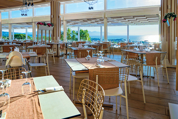 L'hotel dispone di 6 ristoranti: Circle Restaurant interno per la bassa stagione, ed uno esterno panoramico, Panoramic Restaurant, (aperto da Giugno a Settembre, in base alle condizioni climatiche), composto da un sistema di terrazze vista mare, entrambi con servizio a Buffet (vino ed acqua in caraffa inclusi ai pasti). Un Ristorante- grill sulla spiaggia (aperto solo a pranzo su prenotazione giugno a settembre in base alle condizioni climatiche, senza supplemento) ed un esclusivo Ristorante immerso in un lussureggiante giardino, Garden Restaurant, (aperto a cena su prenotazione giugno a settembre in base alle condizioni climatiche, senza supplemento) servito al tavolo. Pizzeria all'aperto, con una selezione di pizze con ingredienti tipici (su prenotazione da giugno a settembre in base alle condizioni climatiche, senza supplemento). Ristorante Donna Fina con menù a base di pesce (aperto da metà giugno a metà settembre su prenotazione ed in base alle condizioni climatiche). Una volta la settimana l’hotel organizza una succulenta cena tipica con specialità siciliane. Possibilità, su richiesta, di cucina senza glutine, con fornitura di alimenti base da parte dell’hotel, tra i quali: pizza senza glutine, pasta, cotoletta di pollo, patatine fritte e pane, oltre ai piatti giornalieri privi di glutine, indicati dallo Chef. L’hotel non garantisce l’incontaminazione in quanto non è fornito di cucina separata.