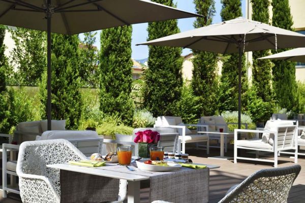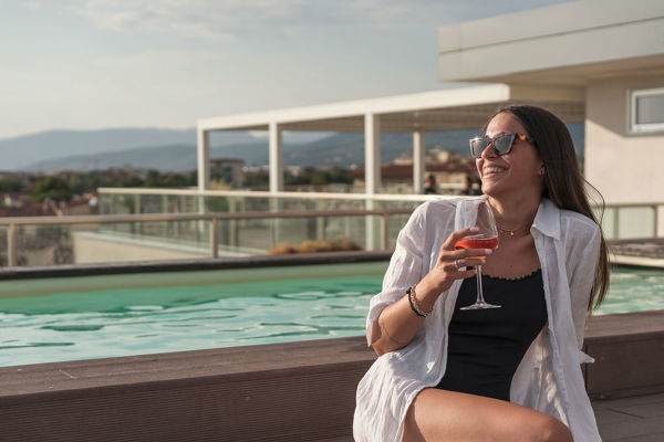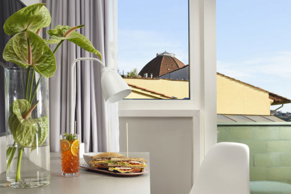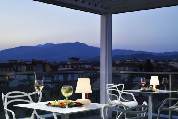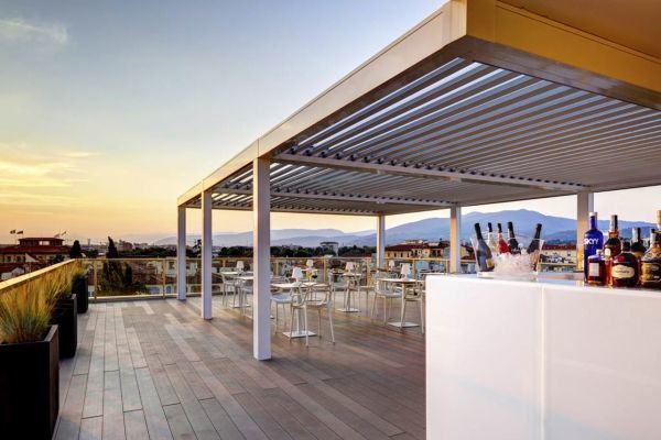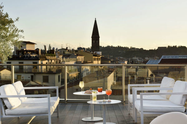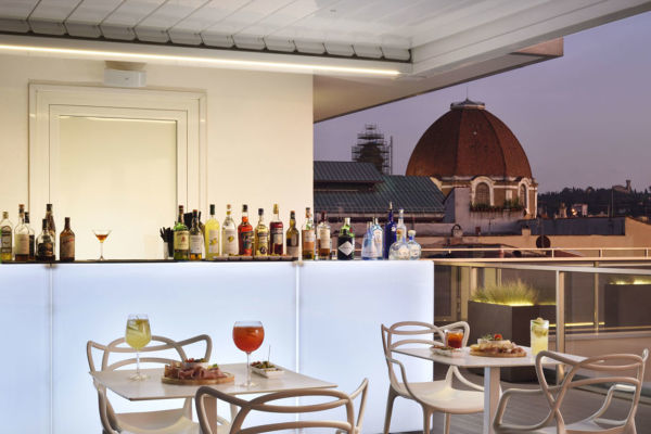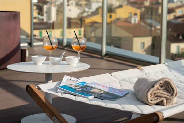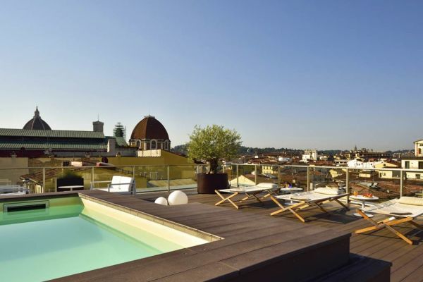 L’hotel dispone di una terrazza panoramica al sesto piano, con una piscina riscaldata che offre una vista mozzafiato sui tetti di Firenze. Un ampio patio esterno con giardino è l’ideale per aperitivi, welcome drink e colazioni all’aperto.