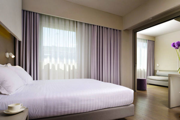 Camera Junior Suite con ColazioneMax. 3 OspitiElegante e luminosa, composta da due ambienti separati: camera con letto king size (o 2 letti singoli) e salottino separato con letto singolo.