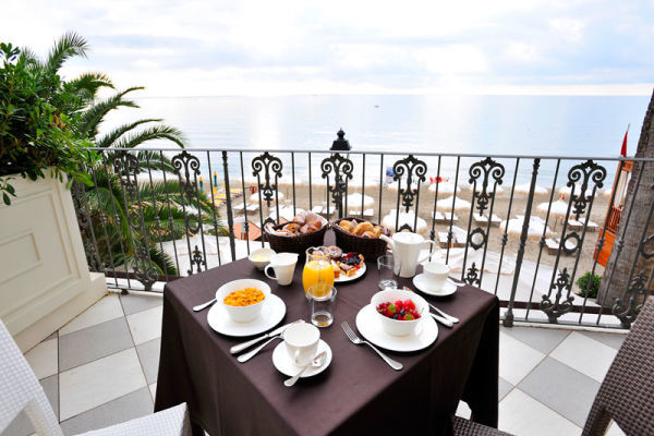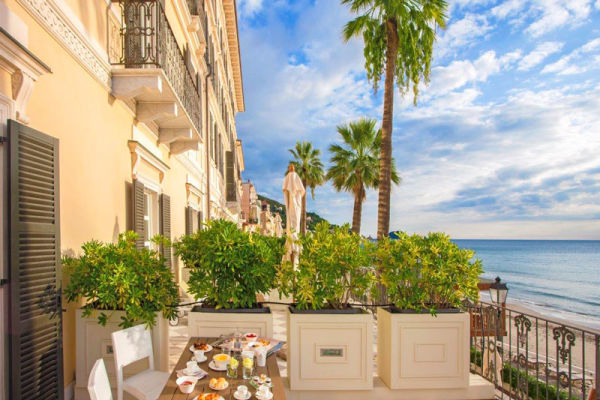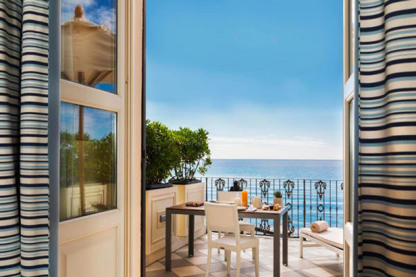 DOPPIA TERRACE DE LUXE: Camera arredata finemente con elegante stile mediterraneo, la più prestigiosa prestigiosa di questa categoria, dispone di una magnifica terrazza privata affacciata su uno degli scorci più belli della Riviera, un spazio rilassante dove far colazione, cenare, leggere, contemplare il paesaggio, o semplicemente farsi cullare dal suono delle onde sulla spiaggia.