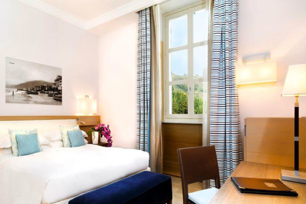 DOPPIA USO SINGOLA SUPERIOR VISTA MARE PARZIALE: Camera per una persona, arredata elegantemente con rilassanti toni pastello ed elementi di design, adatta ad una persona, di circa 20 mq con una vista mare parziale,, arredata con eleganza per esaltare il pittoresco paesaggio fatto di alberi e belle dimore variopinte. Calde venature del legno, blu e il celeste dei tessuti creano sorprendenti armonie cromatiche crando un ambiente molto accogliente.