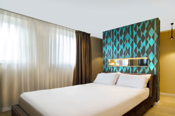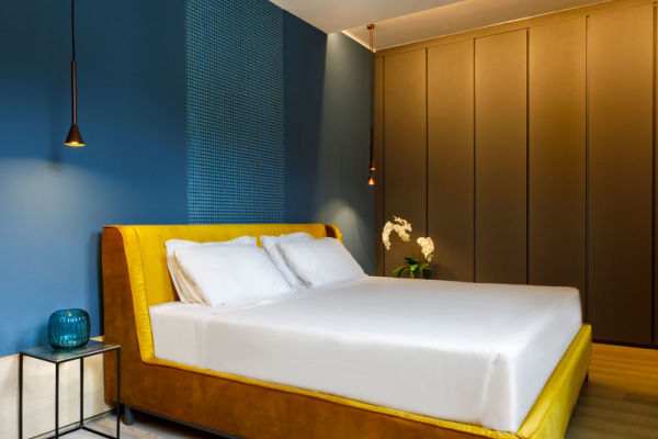 DOPPIA USO SINGOLA SUPERIOR ALASSIO VIEW: Camera arredata elegantemente con rilassanti toni pastello ed elementi di design, adatta ad una persona, di circa 20 mq affacciata sulle ridenti colline di Alassio, arredata con eleganza per esaltare il pittoresco paesaggio fatto di alberi e belle dimore variopinte. Calde venature del legno, blu e il celeste dei tessuti creano sorprendenti armonie cromatiche crando un ambiente molto accogliente.