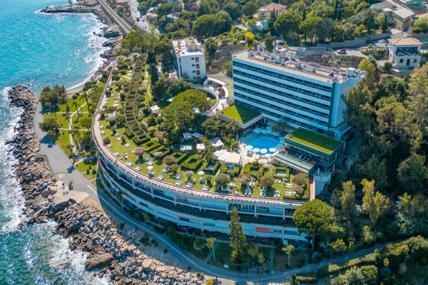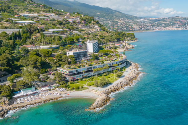Situato a circa 1,5 km dal centro di Bordighera, sorge su un incantevole giardino pensile di 400 mq a picco sul mare.
