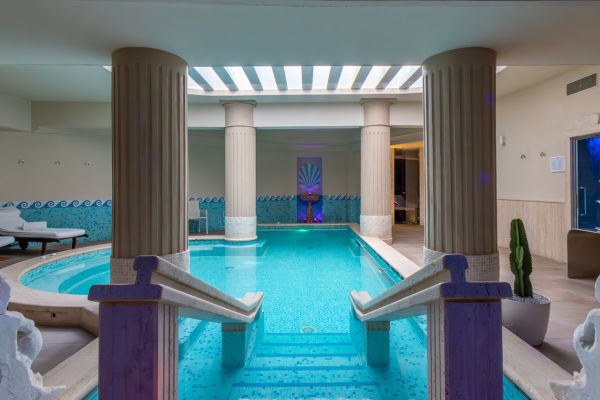 - L'attrezzata Grand Spa del Mare offre 8 diverse sale per trattamenti per una vasta gamma di trattamenti di lusso. Con pagamento diretto di circa € 25,00 a persona, è un'oasi di puro relax aperta tutto l'anno. Dispone di Vitality Pool con acqua di mare e idromassaggio, nuoto contro-corrente, sauna finlandese con pietre laviche, bagno turco con estratti naturali, zona relax con tisaneria biologica, frutta e acque mineralizzate, docce sensoriali a cascata, a pioggia tropicale ed a nebbia fredda alla menta.La Workout zone con macchinari “TechnoGym” è ad uso gratuito. La Grand SPA Del Mare è aperta tutti i giorni dalle 8:00 alle 22:00.