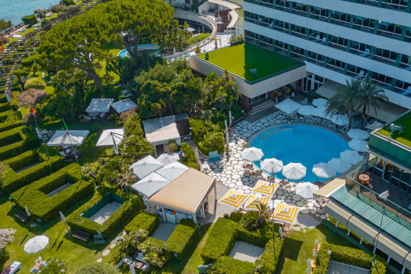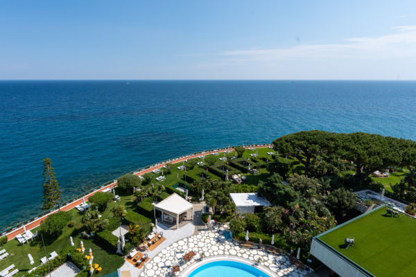 L'esclusivo Grand Hotel del Mare Resort & Spa è situato in posizione privilegiata, circondato da un giardino pensile a picco sul mare. Vanta un lussuoso centro benessere, una piscina all'aperto riscaldata con acqua di mare e una spiaggia privata.E' completamente climatizzato, con ricevimento e servizio Personal Concierge 24/24h, con ampi saloni arredati con mobili d'epoca e opere d'arte, Lounge Bar & Terrace 24h24, ristorante "La Veranda" che propone piatti tradizionali reinterpretati in chiave creativa con gelateria e pasticceria di produzione propria e ristorante "Sunrise" a bordo piscina aperto da marzo a settembre con vista sulla piscina e sul mare. I clienti possono scegliere tra diversi tipi di camere e suite, tutte climatizzate e la maggior parte con balcone o terrazza vista mare, elegantemente arredate e dotate di ogni comfort. Le camere dispongono di aria condizionata, wi-fi, cassetta di sicurezza, tv satellitare LCD e minibar.L'hotel offre un servizio Business centre 24h24, centro congressi polifunzionale ipertecnologico e connessione Wi-Fi gratuita.