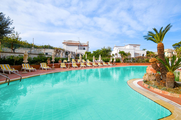 Il Grand Hotel delle Terme di Augusto, hotel 5 stelle, si trova in posizione strategica nel comune di Lacco Ameno. Dista solo 150 metri dal porto turistico di Lacco Ameno, 100 metri dalla prima spiaggia di sabbia, 100 metri dall'esclusiva passeggiata di Corso Angelo Rizzoli, vivacemente animato da ristorantini, bar, negozi e boutique. Inoltre, il famoso e rinomato parco idro-termale del Negombo, uno dei piu' grandi d' Europa con i suoi 9 ettari di estensione e con ben 20 piscine e spiaggia dista solo 1.500 metri raggiungibile anche a piedi. Il Grand Hotel delle Terme di Augusto è il punto di riferimento per un soggiorno remise en Forme a Lacco Ameno. Qui, nella quiete di un rigoglioso giardino mediterraneo ricco di piante tropicali, sarai allietato dall’ampia gamma di servizi che offre la struttura: il rinomato centro salute e benessere di 2000 metri quadri, due ristoranti, l'american bar, 3 piscine termali (di cui una intera) attrezzate con lettini e ombrelloni e l'intrattenimento tutte le sere. Appena fuori dal Grand Hotel, posteggio taxi ed autolinee pubbliche garantiscono estrema facilità nei collegamenti con le principali località e attrazioni dell'intera isola.