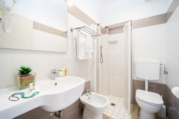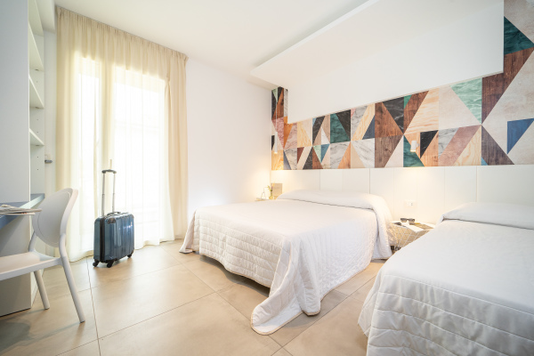 Tutte le camere dispongono di balcone, bagno con doccia, aria condizionata indipendente, cassaforte, smart tv, frigobar, wi-fi gratuito, telefono. Disponibili camere per persone diversamente abili.
