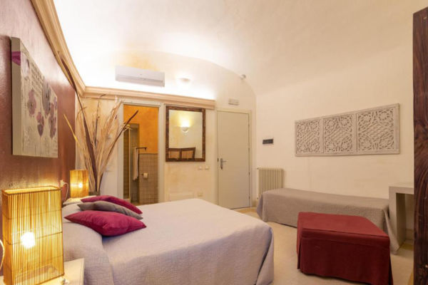 TRIPLA CLASSIC: La Camera tripla Classic è un piccolo rifugio di 11–13 mq, per 3 persone, concepita per evocare un’atmosfera intima e raccolta. L’arredo, studiato con cura, unisce il fascino antico del convento al comfort contemporaneo: colori riposanti, linee semplici, e tocchi decorativi che riflettono la storia del luogo. Perfetta per due persone, offre doccia, telefono diretto, mini bar, Tv Sat, asciugacapelli, aria condizionata, wi-fi.