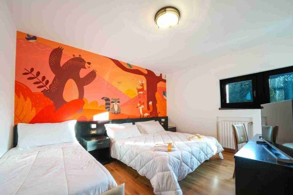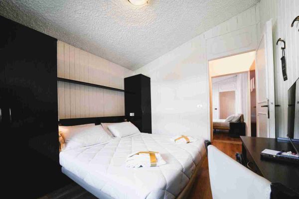 Le camere si suddividono in: Doppie, Quadruple standard, Quadruple comunicanti, Quadruple familiari (fino a 6 posti letto).La maggior parte di esse possiede un balcone. Tutte le camere sono dotate di servizi con doccia o vasca, asciugacapelli e televisore. Troverai al tuo arrivo un delizioso kit di cortesia in omaggio (bagnoschiuma, shampo, sapone).