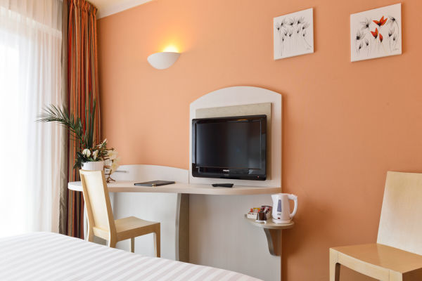 TWIN COMFORT: Camera di circa 18 mq, con letti singoli, è progettata per offrire un soggiorno piacevole e rilassante. Questa tipologia di camera è ideale per soggiorni di lavoro o di relax. Le camere sono tutte non fumatori e offrono wi-fi, aria condizionata, riscaldamento, TV a schermo piatto con canali satellitari, scrivania, telefono, armadio o ripostiglio, e un bagno privato con vasca o doccia, asciugacapelli e set di cortesia.