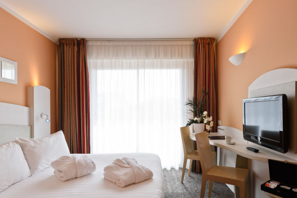 TWIN COMFORT: Camera di circa 18 mq, con 2 letti singoli, è progettata per offrire un soggiorno piacevole e rilassante. Questa tipologia di camera è ideale per soggiorni di lavoro o di relax. Le camere sono tutte non fumatori e offrono wi-fi, aria condizionata, riscaldamento, TV a schermo piatto con canali satellitari, scrivania, telefono, armadio o ripostiglio, e un bagno privato con vasca o doccia, asciugacapelli e set di cortesia.