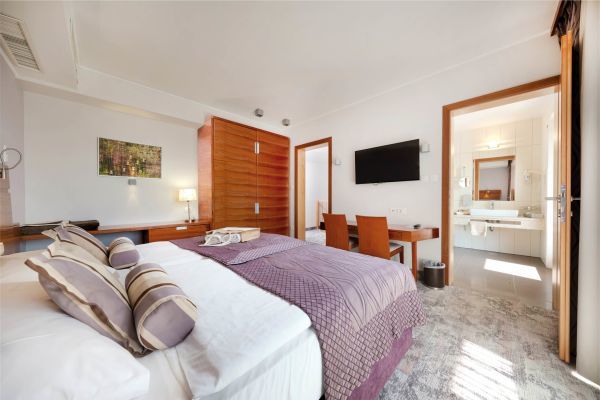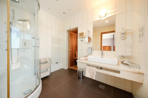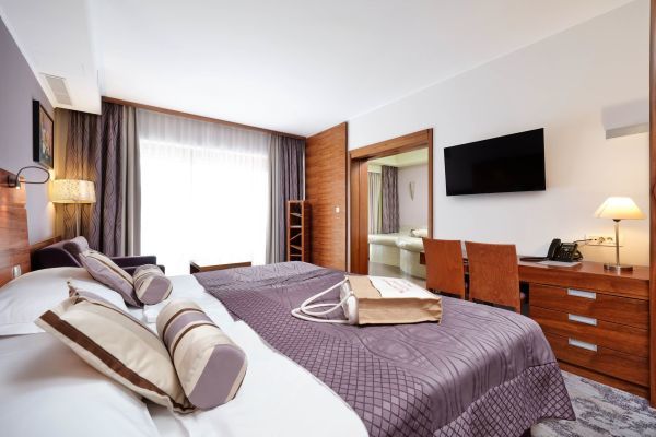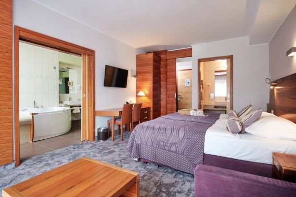 Suite Gala: una camera da letto e bagno con un caldo letto in ceramica, vasca idromassaggio e sauna finlandese. 44 mq.