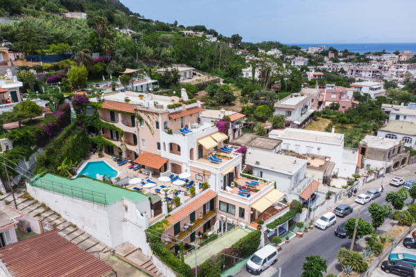 In zona tranquilla e panoramica; non lontano dalla spiaggia, dalla pineta e dalle principali attrattive del centro di Ischia.