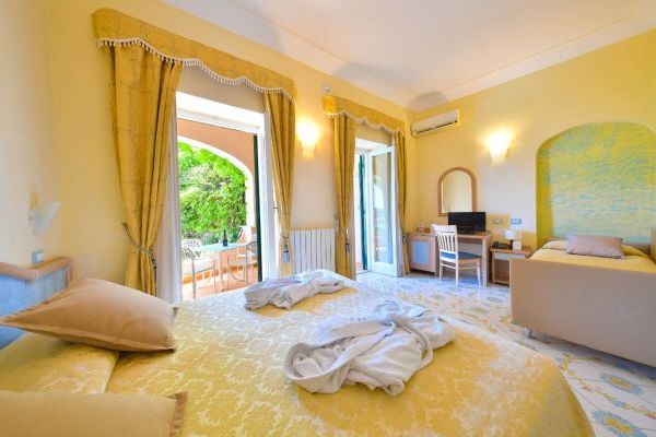 Ristorante climatizzato, particolarmente rinomato per l’ottima cucina regionale, con ampio utilizzo di prodotti tipici locali. Prima colazione a buffet e menu a scelta ai pasti; cena con buffet di antipasti e verdure (su richiesta e senza supplemento, possibilità di cucina senza glutine e vegetariana). Settimanalmente serata con musica. Hall con reception h24, internet point ad accesso libero e Wi-Fi gratuito in tutta la struttura; ascensore, bar e tavernetta. 2 piscine termominerali, di cui una coperta “Iris” ed una esterna Fonte “Grannos”, con idromassaggio, solarium attrezzato e terrazze elioterapiche con vista panoramica sul golfo di Napoli. Servizio navetta da/per il centro e la spiaggia ad orari prestabiliti. Su richiesta e a pagamento: possibilità di noleggio accappatoio, servizio baby sitting e servizio lavanderia. Parcheggio comunale, non custodito, a ca. 10 m. Animali ammessi di piccola taglia (escluse aree comuni).Durante la cena è obbligatorio, per gli uomini, indossare un pantalone lungo. Servizio spiaggia incluso per min. 7 notti dal 26/05 al 01/08 e dal 01/09 al 26/09 con ombrellone e sdraio (dal lunedì al venerdì).