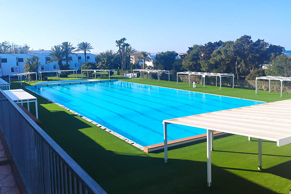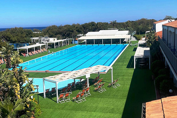 A disposizione degli ospiti piscina olimpionica per adulti e piscina separata per bambini (cuffia obbligatoria) allestita con sdraio ad esaurimento (nei weekend di giugno piscina olimpionica non disponibile per tornei di nuoto) e centro benessere (a pagamento).