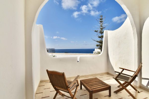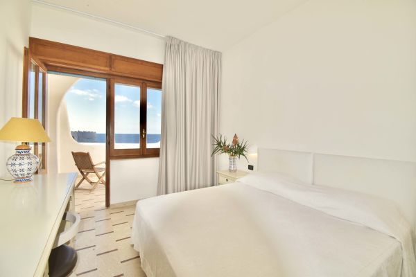 90, dotate di servizi privati con doccia a pioggia, phon, telefono, tv, connessione Wi-Fi gratuita, aria condizionata, cassaforte e balcone. Si suddividono in: classic rivolte verso l’interno, in posizione rialzata con affaccio sulla verde macchia mediterranea e sulle colline di tufo rosso; comfort con minifrigo (riempimento su richiesta) e vista mare.