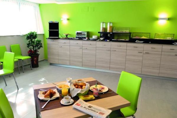 colazione a buffet in una sala al primo piano, ristorante, ascensore, sala meeting e giardino. Wi-Fi e ampio parcheggio interno gratis. Animali non ammessi.