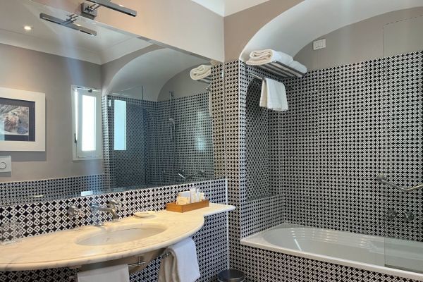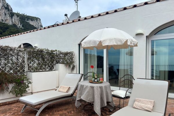 Superior con terrazzino: Le Superior si aprono sullo splendido scenario della Piccola Marina di Capri, offrendo un connubio di autenticità e comfort. 23mq.