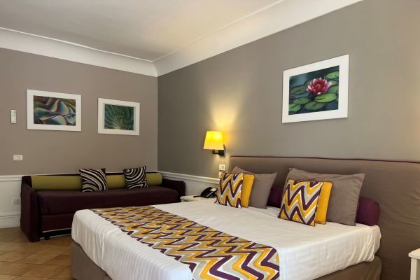 Camera Classic: Ambienti raffinati ed essenziali, pensati per offrire il massimo comfort in un’atmosfera di pura armonia. 18mq.