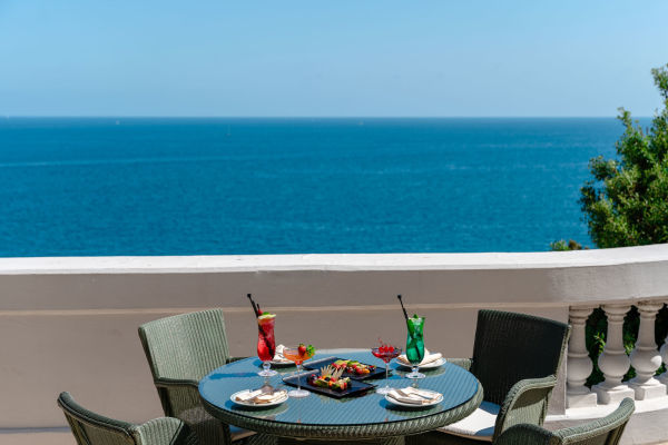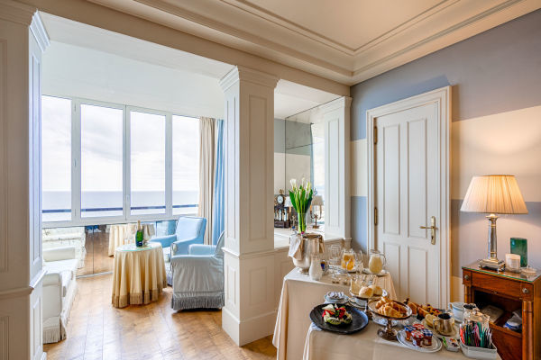 JUNIOR SUITE VISTA MARE: Camera di circa 50 mq, finemente arredata e decorata con piccolo angolo soggiorno e bow window con affaccio alla francese vista mare, letto matrimoniale (due letti singoli su richiesta). Questa tipologia può essere comunicante con una camera Exclusive su richiesta.