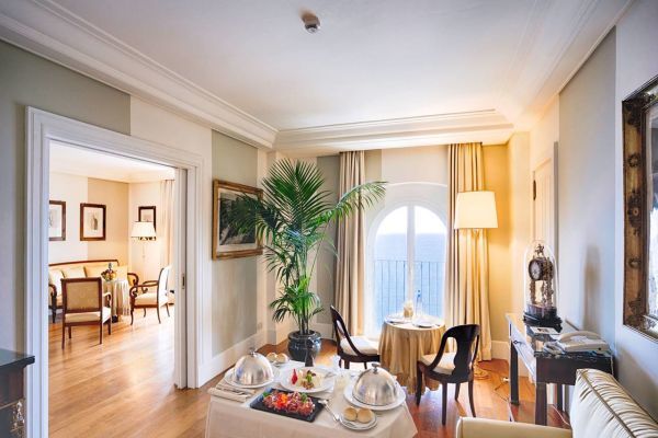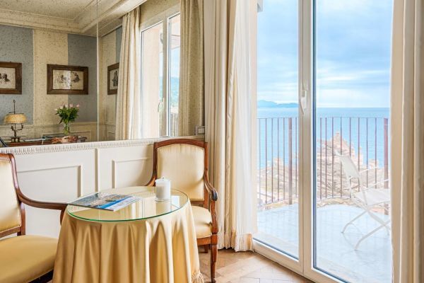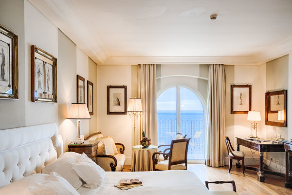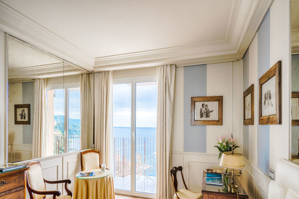 SUITE CLASSIC BALCONE VISTA MARE: Camera a partire da 50 mq, dotata di ampio soggiorno elegantemente arredato in stile imperiale, con balcone e meravigliosa vista sul Golfo di Rapallo e sulla Baia di Rapallo. Occupazione massima di 2 persone.