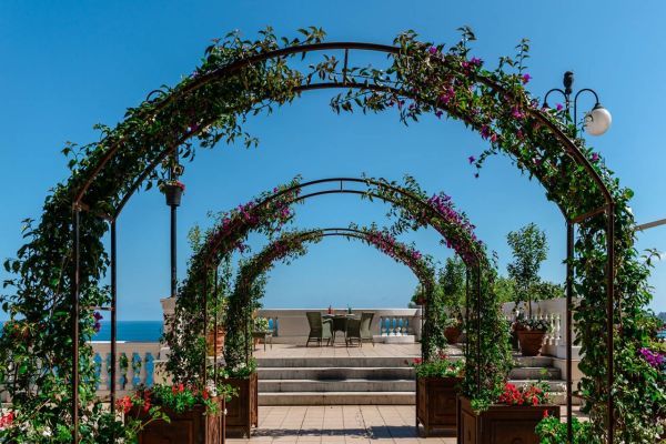- Lo stabilimento balneare è collegato con l'hotel da una breve passeggiata, attraversando giardini e terrazze che scendono gradatamente verso il mare, fino ad arrivare ad una piattaforma di roccia attrezzata, da inizio giugno a circa fine settembre.