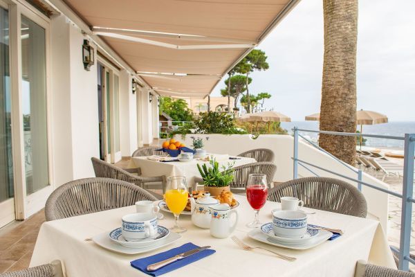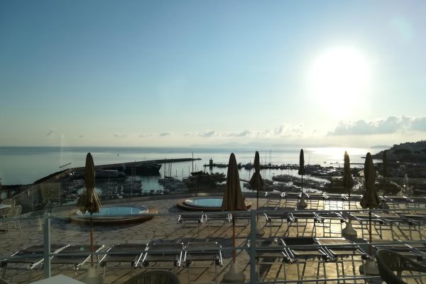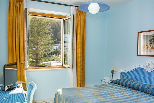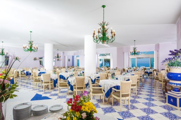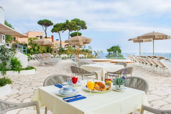 prima colazione a buffet; ristorante panoramico con proposte di piatti della cucina regionale ed internazionale con particolare attenzione a chi necessita e richiede una cucina priva di glutine; cena con menu a scelta, buffet di contorni e servizio ai tavoli. Possibilità di snack bar à la carte a pranzo. Settimanalmente, serata folkloristica ischitana e serata di gala con musica. Hall con reception h24, Wi-Fi nelle aree comuni, ascensore, sala tv/lettura, bar. Piscina esterna di acqua termo-minerale (24°/26°C) con idromassaggio, 2 Jacuzzi Panoramiche Esterne e ampia terrazza-solarium panoramica, attrezzata con sdraio ed ombrelloni; piscina coperta termale (34°C). Servizio navetta dal centro di Casamicciola Terme e la spiaggia, da fine maggio a circa metà ottobre, ad orari prestabiliti. Piccolo parcheggio privato, non custodito, ad esaurimento. Animali ammessi di piccola taglia (escluso aree comuni).