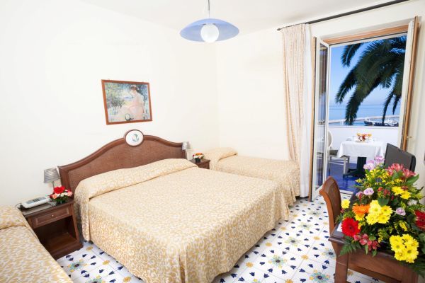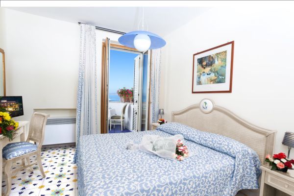 46 (tutte raggiungibili con ascensore), con arredi dalle linee semplici ed eleganti, sono dotate di servizi privati, telefono, tv, frigobar, cassaforte, aria condizionata e riscaldamento. Si suddividono in: standard con finestra; comfort con balcone lato monte o con finestra vista mare; superior con balcone vista mare.