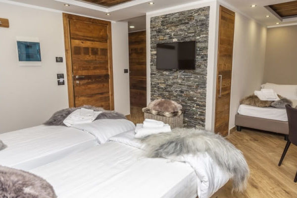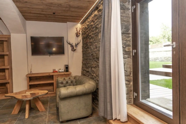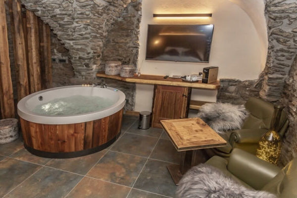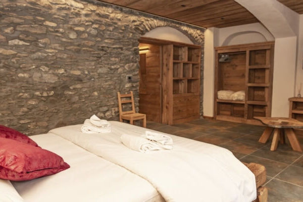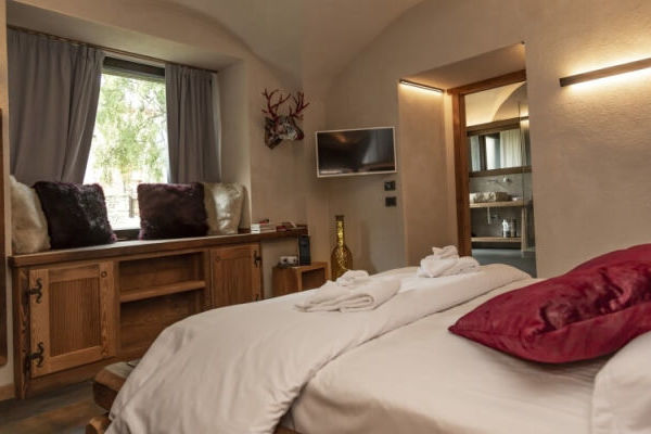Suite Seguret: ricavata all’interno di una vecchia baita di montagna, presenta camera matrimoniale con possibilità di aggiunta di un terzo letto, ed una vasca Jacuzzi di nuova generazione dove rilassarsi, giardino privato all’esterno.