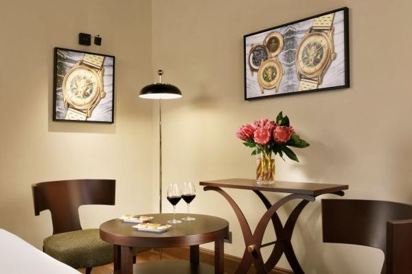 Questo raffinato hotel 4 stelle coniuga eleganza contemporanea e fascino tematico: ogni dettaglio è ispirato al mondo dell’alta orologeria. I piani dell’albergo rendono omaggio a prestigiose maison di orologi da polso – Rolex, Vacheron Constantin e Patek Philippe – attraverso arredi su misura, materiali pregiati e dettagli unici. Le camere, dallo stile ricercato, vantano bagni in marmo, maniglie a forma di lancette e rubinetti che richiamano le corone di carica degli orologi.