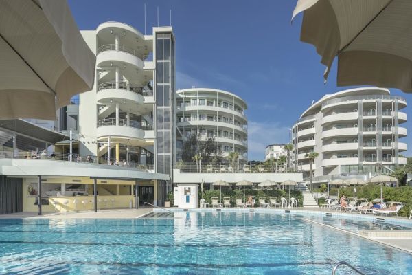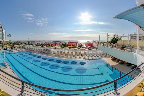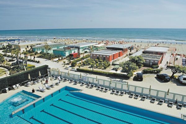 L'Hotel Le Palme è un elegante 4*S fronte mare a Milano Marittima. Dispone di piscina semi‑olimpionica con idromassaggio e area wellness con sauna e bagno turco.