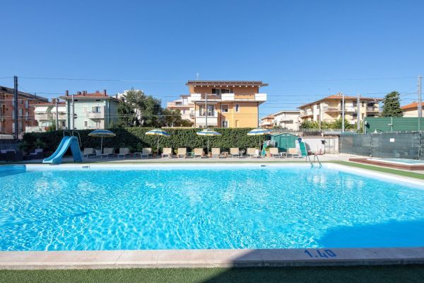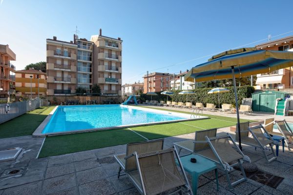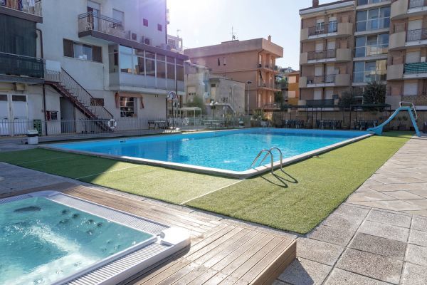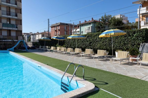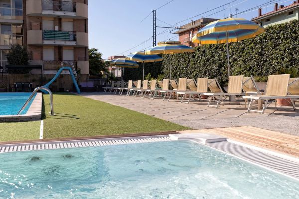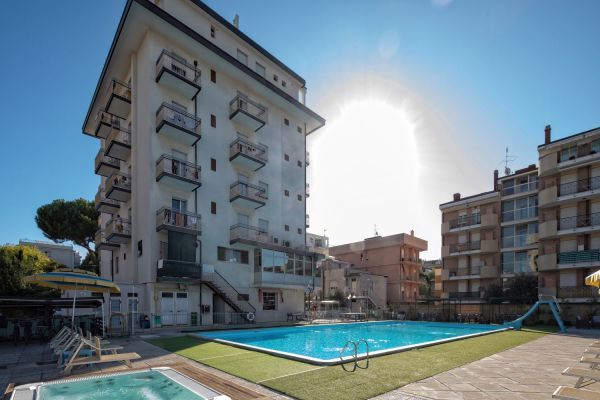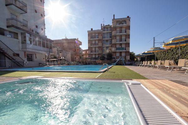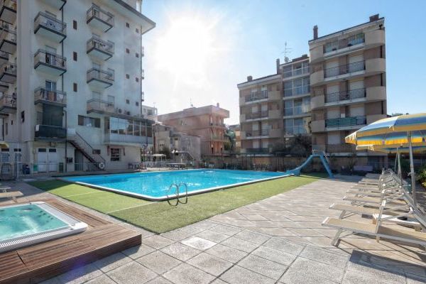 Sala soggiorno con bar e reception 24h, ascensore, parcheggio scoperto fino esaurimento, biciclette, wi-fi, piscina esterna 10x20m con zona riservata ai bimbi, solarium con lettini e ombrelloni, vasca idromassaggio 6 posti a pagamento, area giochi per bambini. Colazione a buffet; a pranzo e cena 3 menù a scelta più buffet di verdure, antipasti e dessert. Animazione nella spiaggia convenzionata.