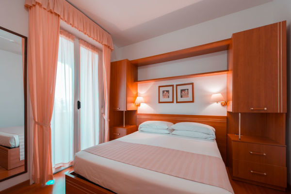 QUINTUPLA SUPERIOR: Camera di circa 40 mq, ideale per 5 persone composta da un soggiorno con divano letto doppio, da una camera da letto matrimoniale e da una seconda camera, alcune hanno un pratico angolo cottura a scomparsa (su richiesta, con supplemento); comprende il servizio di pulizia giornaliera e il cambio delle lenzuola e degli asciugamani.