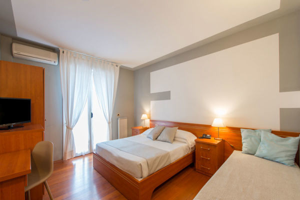 TRIPLA CLASSIC: Camera di circa 32 mq, composta da due ambienti separati da una porta scorrevole. La stanza dispone di un balcone attrezzato con tavolo e sedie. Alcune camere Classic possono disporre di un angolo cottura a scomparsa, utilizzabile solo su richiesta all'atto della prenotazione e con supplemento.