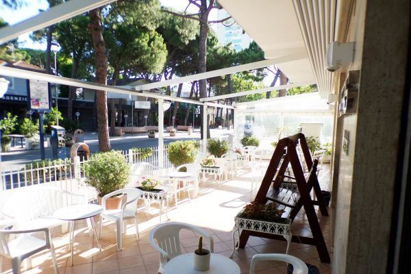 Albergo in centro a Milano Marittima, in zona pedonale con accesso autorizzato al parcheggio dell'Hotel, a pochi passi dai negozi più eleganti e a 120 metri dal mare.