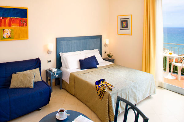 DOPPIA CLASSIC: Camera di circa 13 mq, finemente arredata con mobili moderni, spaziosa, luminosa e funzionale, con balcone e vista mare laterale.