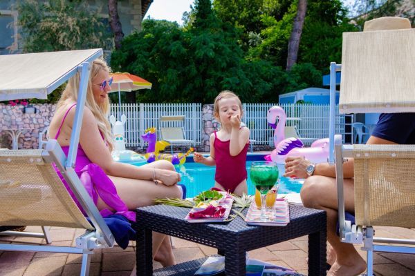 La posizione strategica, la sala meeting e il ristorante-pizzeria “Capo del Molo” rendono l’hotel adatto a ogni tipo di clientela: coppie, famiglie e ospiti business in cerca di relax, svago e divertimento. Dispone di ambienti comuni climatizzati, reception, bar, sala TV, veranda, ascensore, piscina con angolo idromassaggio, giardino con area giochi per bambini. Piccolo parcheggio privato video sorvegliato, disponibile su prenotazione a pagamento.