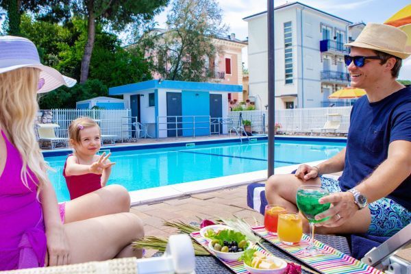 Ricca colazione a buffet dolce e salata. Presso il ristorante e pizzeria “Capo del Molo”, menu del giorno alla carta con gustose specialità di carne e pesce della tradizione romagnola, antipasti e contorni a scelta. Su richiesta, menu dedicati ai più piccoli e preparazioni per celiaci (alimenti di base forniti dall’hotel, non certificato AIC).
